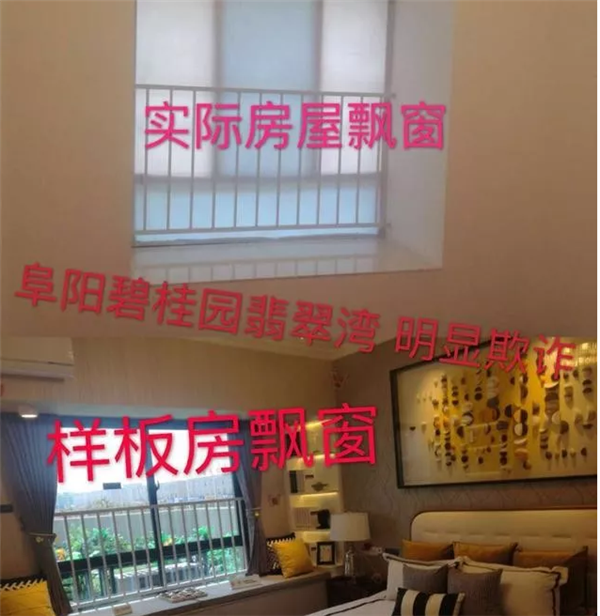 二,房屋结构问题,2018.9.1碧桂园方面进行工地开放日活动,让业主进入工地查看样板房,发现实际房屋结构与当初销售时宣传的严重不符,阳台变成错层,业主的住宅安全有严重问题,阳台空间变小。室内飘窗与当初宣传严重不符,窗户两边的强全部堵住,室内空间狭小,压抑。经与碧桂园协商百般推诿,拒不解决,甚至第二天在样板房贴出与实际交房不一致的纸制文件,严重侵犯业主权益,为何当初购房时我们业主都看不见这一张张纸,现在却做掩耳盗铃之事,其行径,处事态度,令业主怒火三丈。碧桂园如此作为,真真实实的是欺骗,是坑蒙拐骗!!!通过飘窗的协商又发现一个严重问题:一个碧桂园翡翠湾销售部的经理,他说只是几套房屋承重出现问题,为了对付上面的相关检测才弄的小飘窗。承重出现了问题,又看到新闻最近报道六安碧桂园坍塌事件,业主们心里真是很害怕,一家人前半生的积蓄买了一套房子,余后半生还要还贷款,还有担心会不会被砸死在碧桂园的房子里。强烈要求政府能够彻查!!