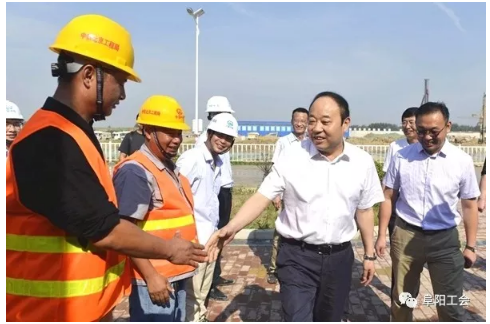 7月19日,省人大常委会副主任、阜阳市委书记李平在市政协副主席、市总工会主席李进和市总工会党组书记、副主席房继红等领导的陪同下,冒着酷暑来到部分重点项目建设现场,代表市委市政府看望慰问一线劳动者,并向全市奋战在高温一线的广大干部职工表示衷心感谢,同时送去“送清凉”物资。