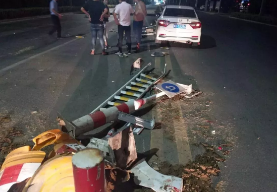 7月25号凌晨,在颍上县城区,一辆疾驰的轿车在转弯时撞上了隔离护栏,车辆和护栏受损严重。据现场民警介绍,防撞柱跟护栏都撞毁有十几米远。有一个护栏的横杆把(车辆)引擎盖戳穿之后包括前挡风玻璃都扎通,离驾驶员只有十几公分左右。