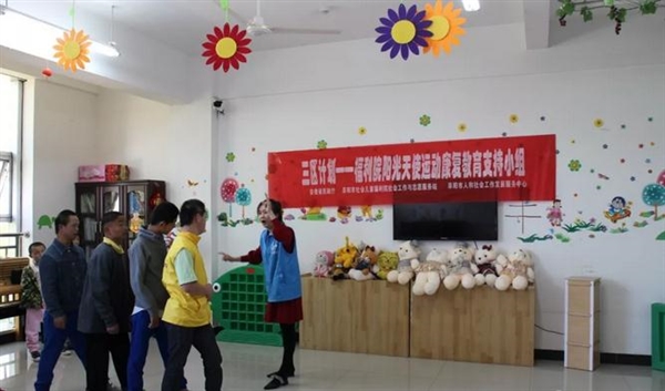 2018年4月19日,“三区计划”项目社工为阜阳市社会儿童福利院的孩子们开展了第五节阳光天使运动康复教育支持小组活动,这也是本次运动康复教育支持小组的最后一次活动。孤残儿童运动康复教育支持小组为组员创